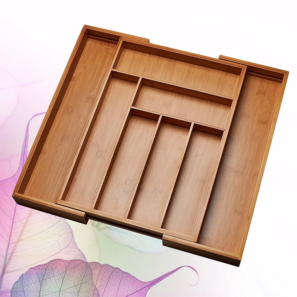 Поддон для вилки и ложки для макияжа, поднос для телескопических столовых приборов, контейнер для хранения из бамбука для кухонных ящиков, л...