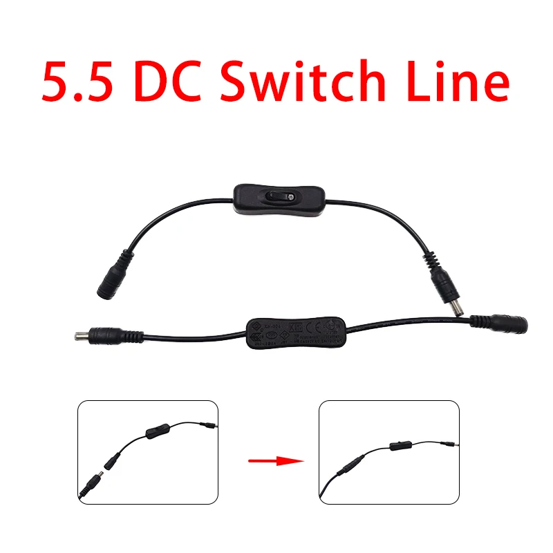Подключите переключатель аккумулятора, DC 12 В, шнур питания шины 5,5x2,1 мм, разъем постоянного тока вкл/выкл, встроенный переключатель 304, 5 В, 24 В, светодиодная лента
