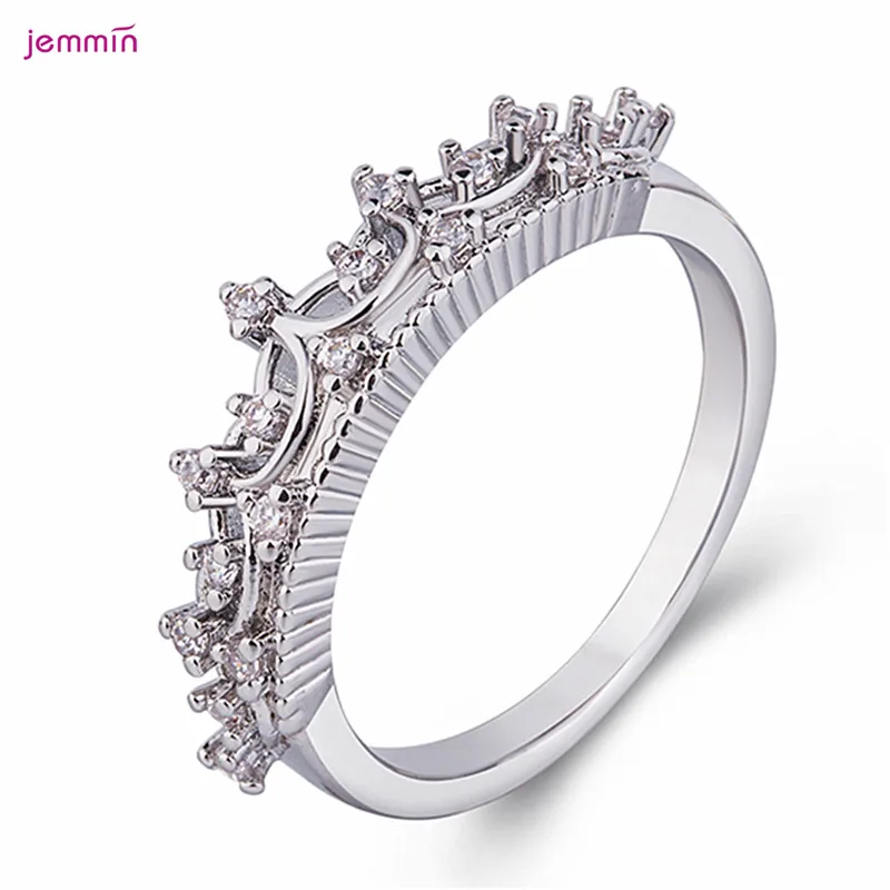 Подлинное серебро 925 пробы Ослепительная Корона CZ кулон палец кольца для женщин обручальное заявление ювелирные изделия оптом
