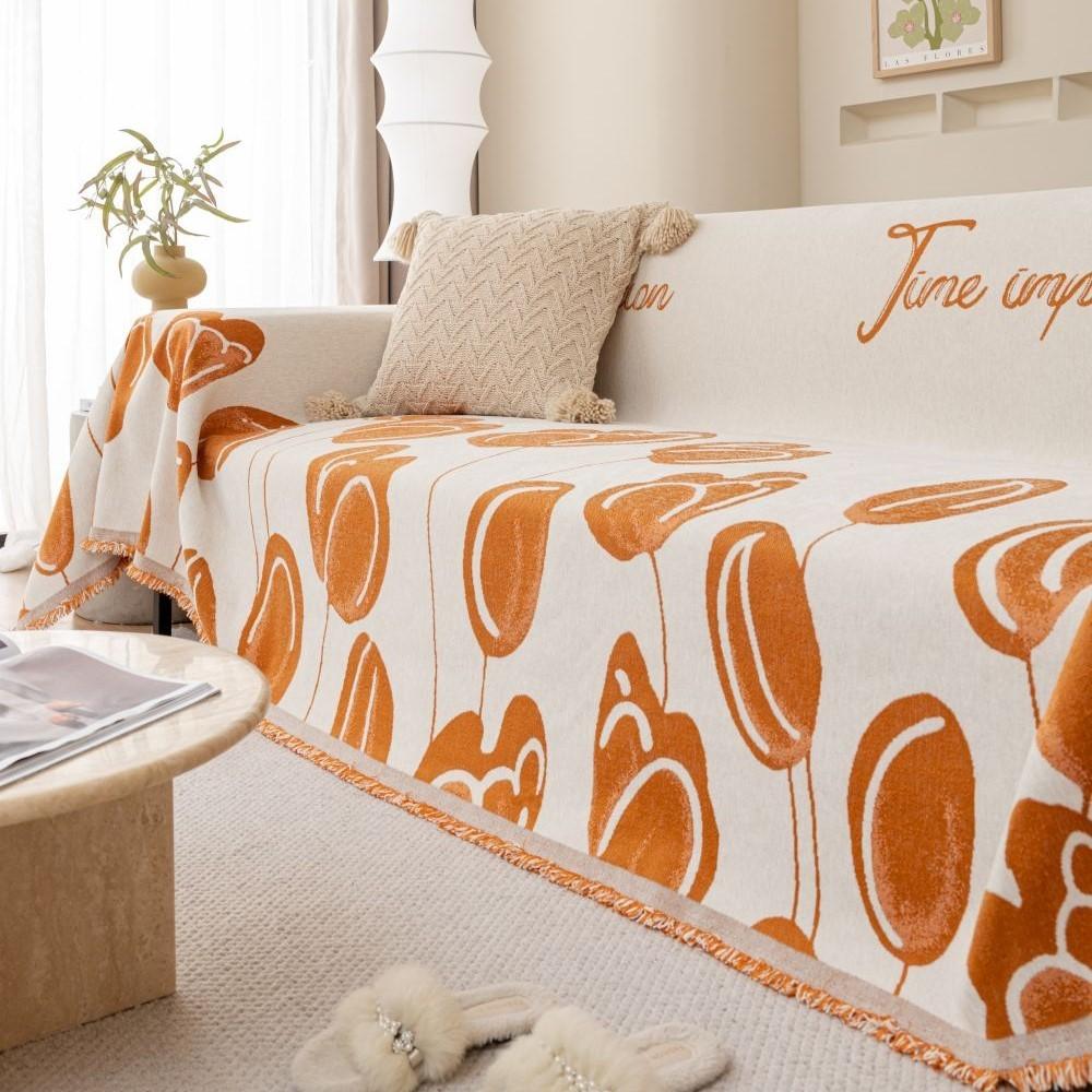 Подлокотник Многофункциональное одеяло Чехол для дивана Ткань Полотенце Анти-кошачьи царапины Всесезонная универсальная жаккардовая противоскользящая подушка Спинка 180x130cm оранжевый