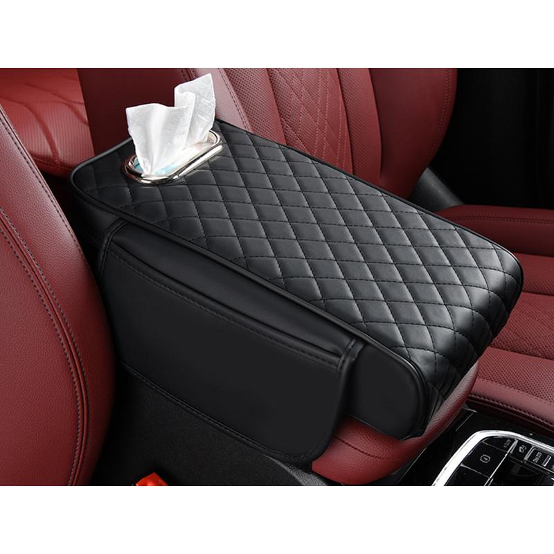 Подлокотник для автомобиля, подушка для сиденья, сумка для хранения салфеток, натуральная кожа, подлокотник для автомобиля, портативный, универсальный, наволочка для подлокотника чёрный