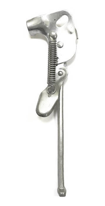 Стальная серебристая подножка для велосипеда с диаметром колеса 20 дюймов. Качественная. Долговечная. Устанавливается на заднюю ось колеса. Уточняйте совместимость с вашим велосипедом.