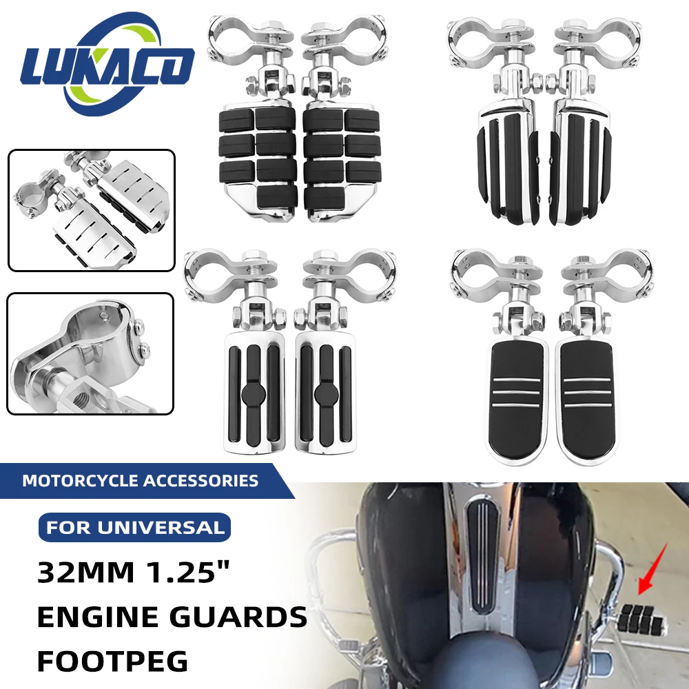 Подножки для мотоцикла, хром, 32 мм, 1,25 дюйма, с зажимом для шоссе, для Harley Kawasaki Suzuki Yamaha Honda