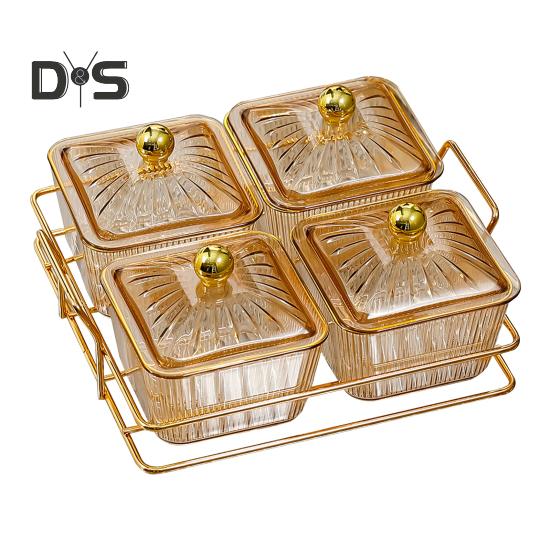Поднос для орехов и конфет с крышками, фруктовая тарелка, пластиковое отделение, демонстрационная тарелка для закусок, раздельные сервировочные миски для кофе и чая 4Grid золотистый