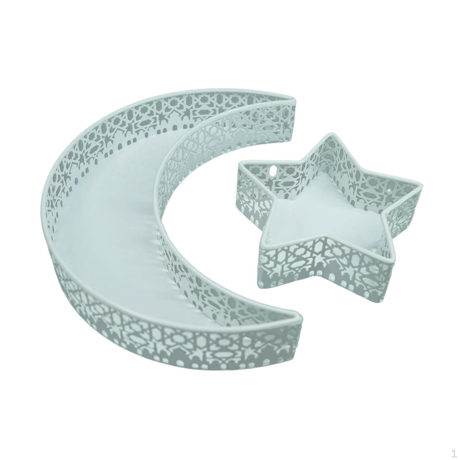 Поднос с луной и звездой, металлические сервировочные блюда, блюдо с кольцами для украшения Рамадана для кухонной вечеринки Light Blue