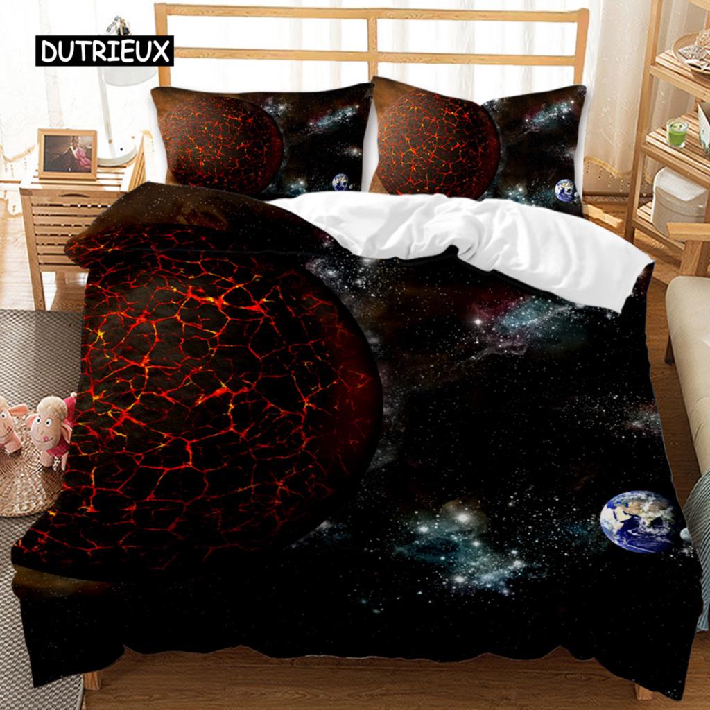 Пододеяльник Планета Вселенная Комплект постельного белья для двоих Солнечная система Космос Пододеяльник 3D Звездное небо Астрономия Комплект постельного белья из полиэстера US Queen(228x228cm)