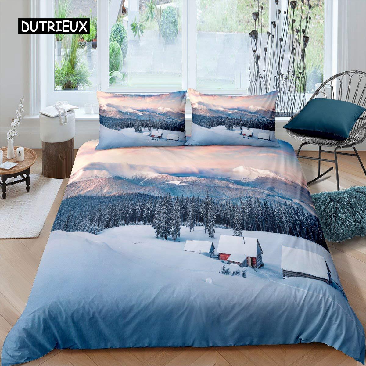 Пододеяльник «Снежная гора» Комплект постельного белья «Морские волны» Морской пейзаж Одеяло размера «king size» Покрывало из полиэстера с изображением природы EU single(135x200cm)