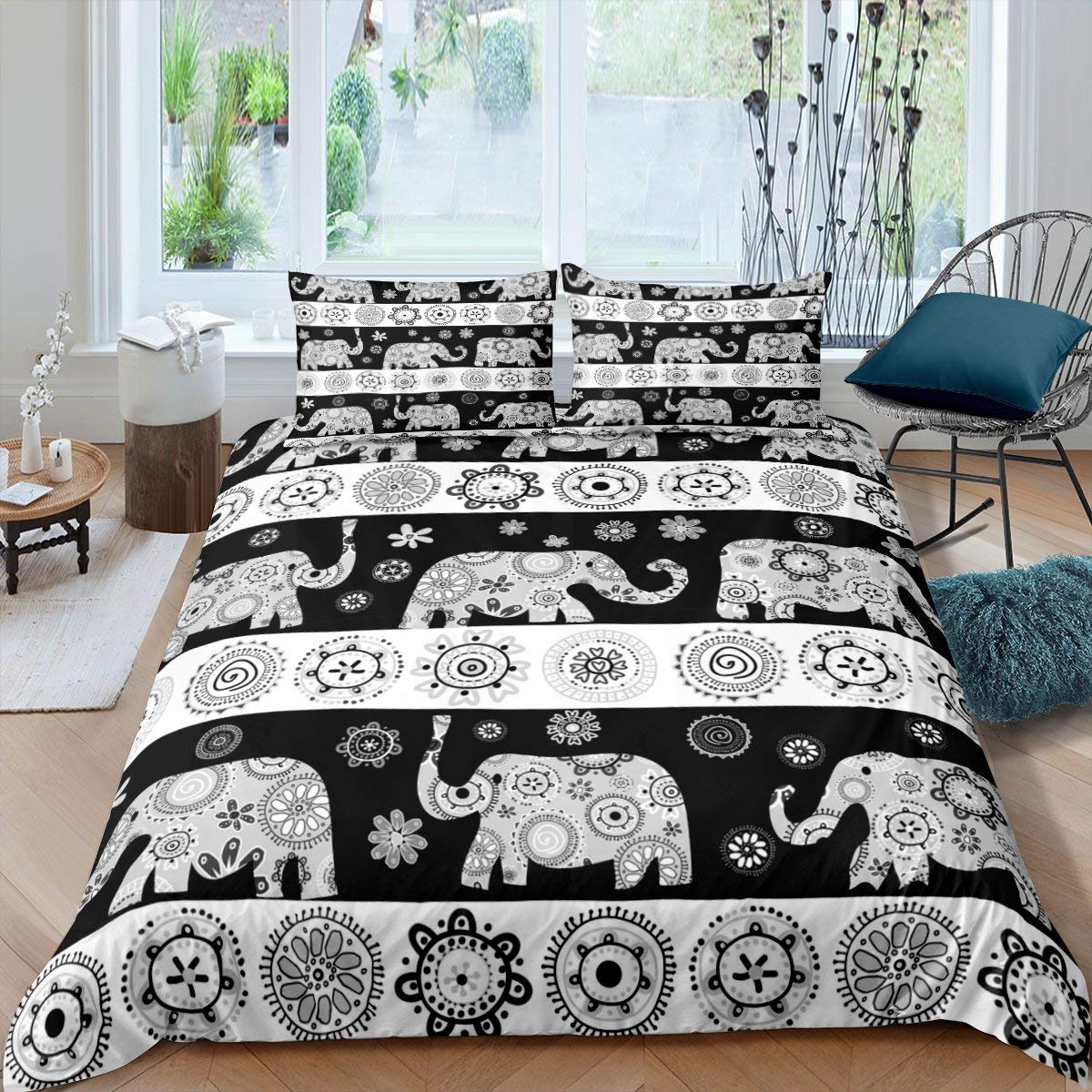 Пододеяльник в этническом стиле со слоном в экзотическом стиле, комплект постельного белья в стиле бохо, мандала, цветок, пейсли, пододеяльник из полиэстера EU single(135x200cm)