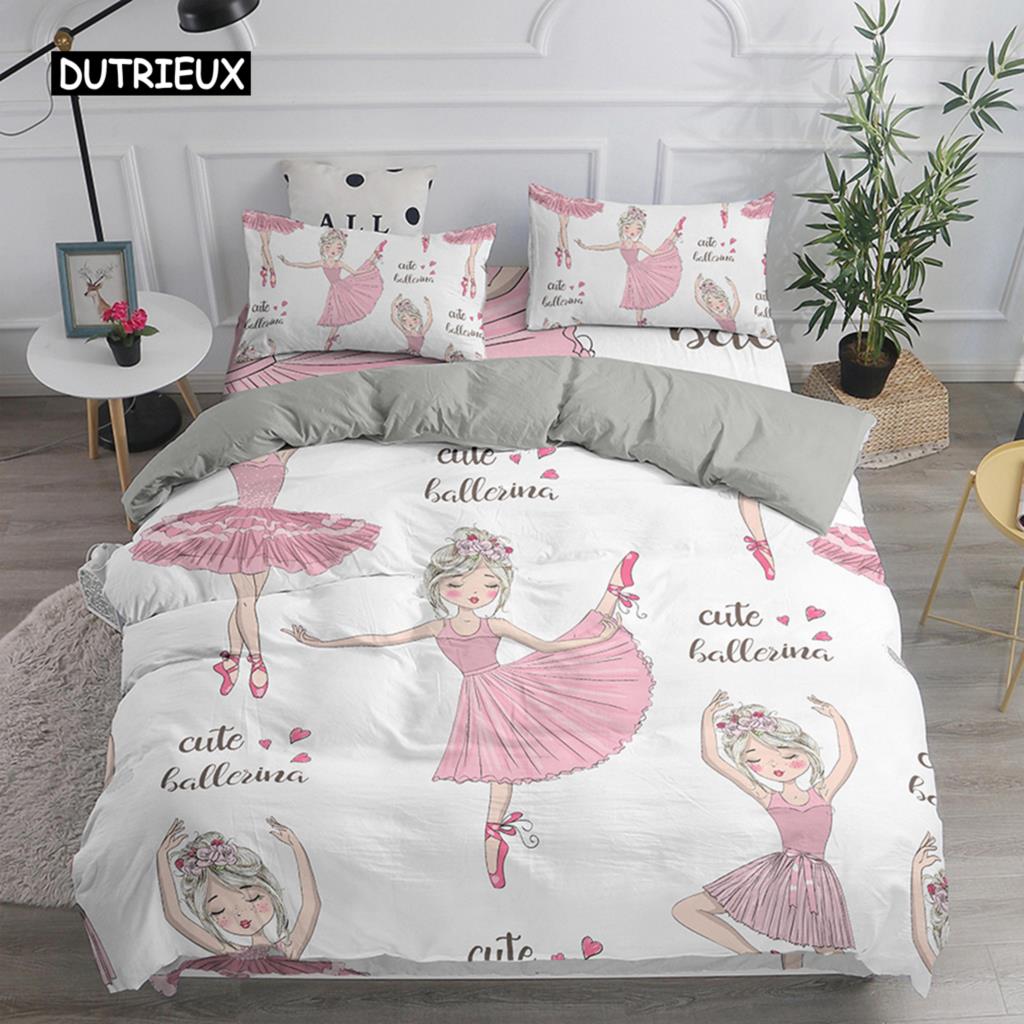 Пододеяльник для девочек-танцовщиц «Прекрасные маленькие балерины» Комплект постельного белья для девочек 135 розовое одеяло Покрывало для принцессы Кровать односпальная HomeTextiles EU single(135x200cm)