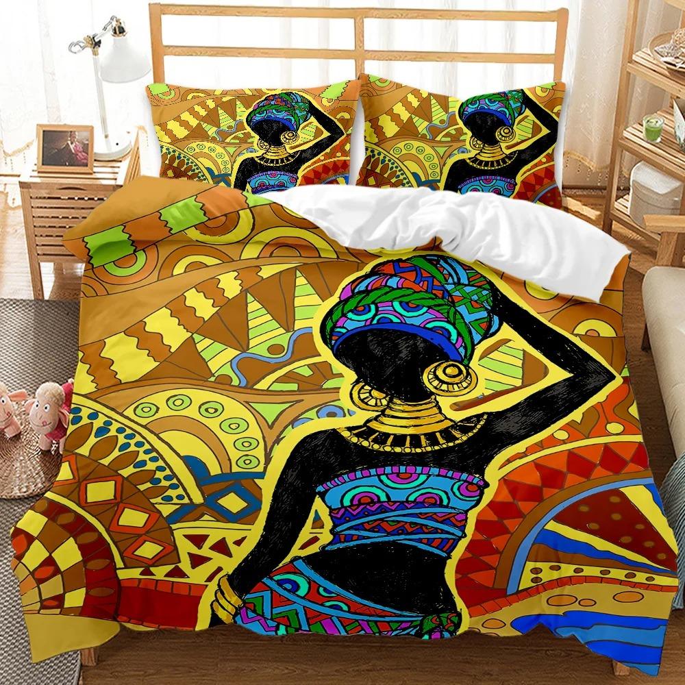 Пододеяльник для чернокожей женщины в африканском стиле размера King Size, комплект постельного белья для девочек в африканском стиле в стиле бохо, женское одеяло из полиэстера EU Single 135x200cm