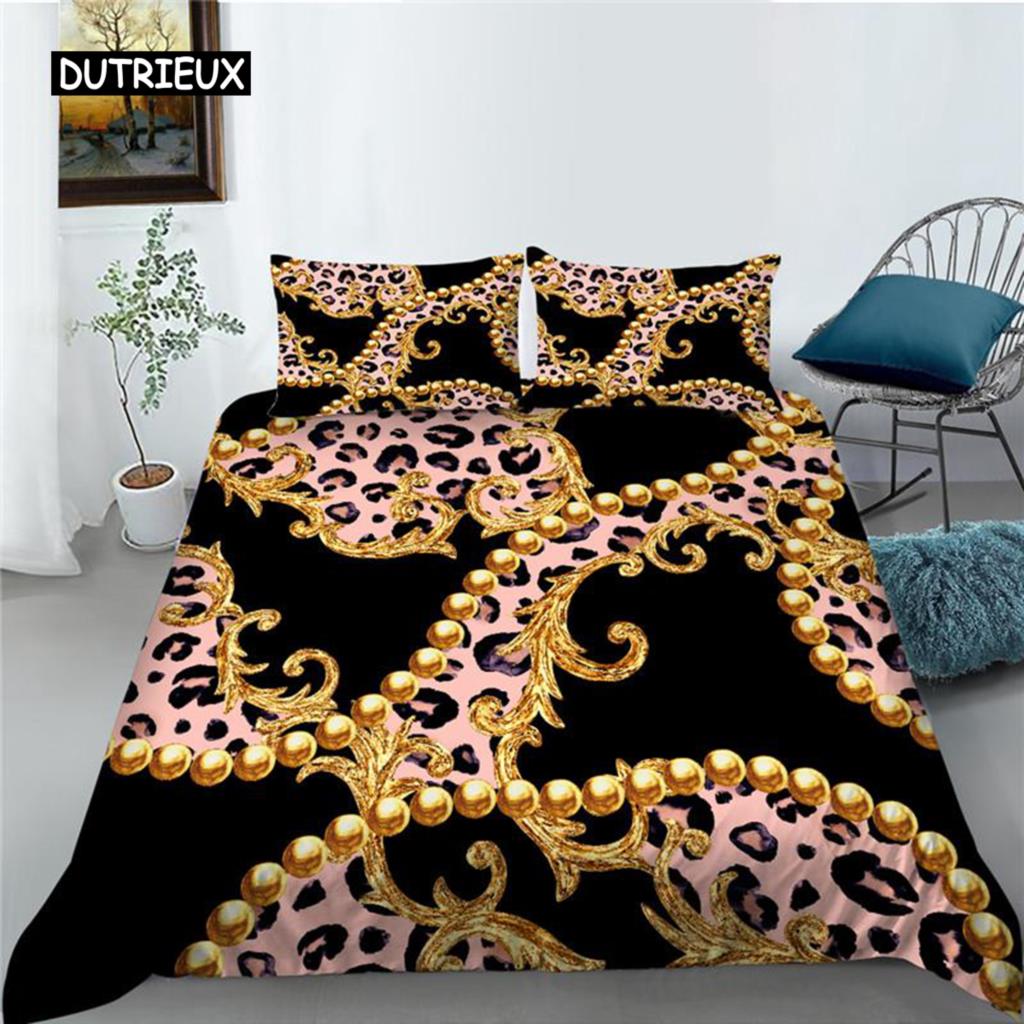 Пододеяльник с леопардовым принтом, комплект постельного белья из микрофибры в европейском стиле в стиле ретро, комплект постельного белья для двоих с леопардовым принтом и золотой цепочкой, пододеяльник King Quilt Cover EU single(135x200cm)