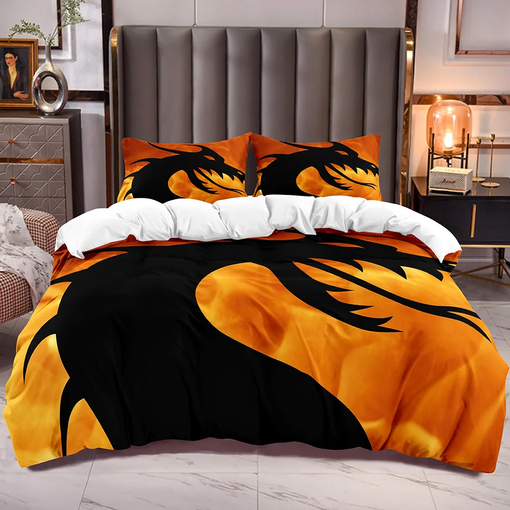 Пододеяльник с принтом пламени дракона для детской спальни с одеялом для подростков чехол с черным принтом дракона застежка-молния