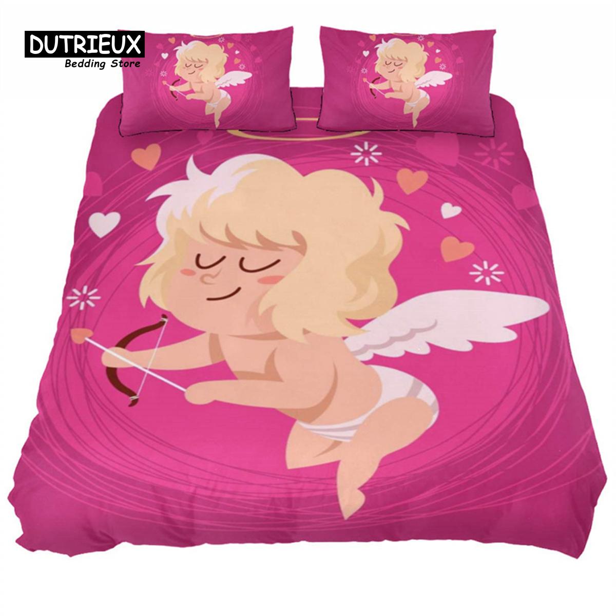 Пододеяльник с 3D-мультяшным ангелом, комплект постельного белья с крыльями ангела, микрофибра, одеяло с цветком, полный размер King Size для девочек, детей, подарки EU single(135x200cm)