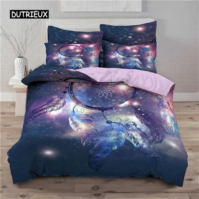 Пододеяльник Dream Catcher для девочек и взрослых в богемном стиле с принтом мандалы и перьев, постельные принадлежности, пододеяльник из микрофибры, декор для спальни, комплект из трех предметов EU single(135x200cm)