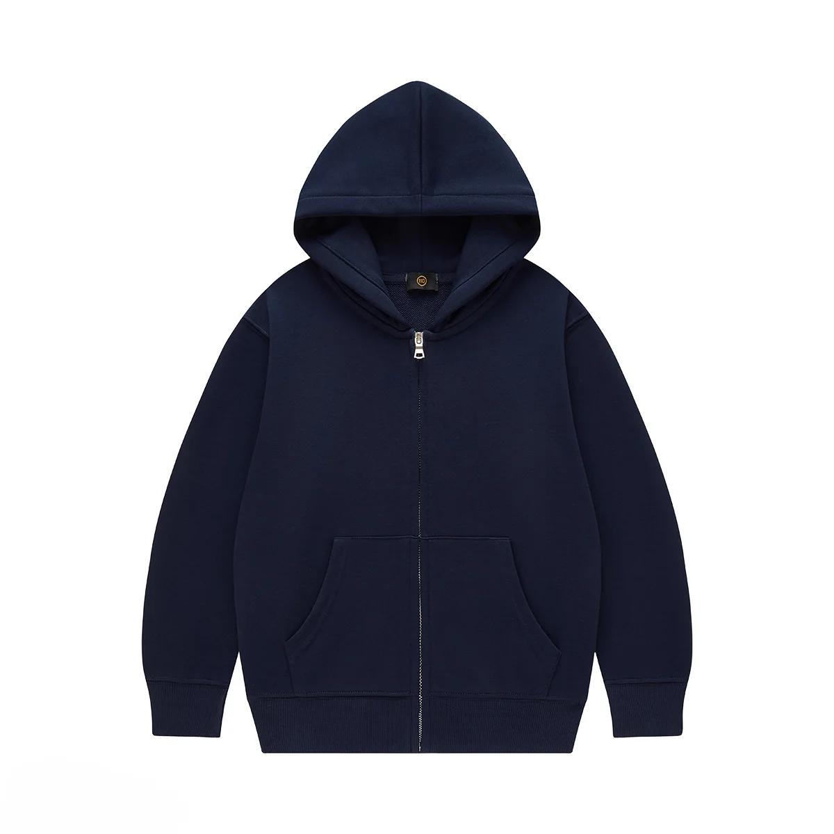 Подростковые детские толстовки с капюшоном, осенняя 350 г махровая хлопковая толстовка на молнии, куртка для мальчиков и девочек, верхняя одежда, повседневная спортивная базовая одежда для детей 150cm тёмно-синий