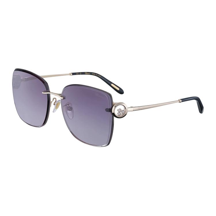 Chopard Металлические кристальные квадратные солнцезащитные очки женские разноцветные, Bright Rose Gold Frame Gradient Smoky Lens