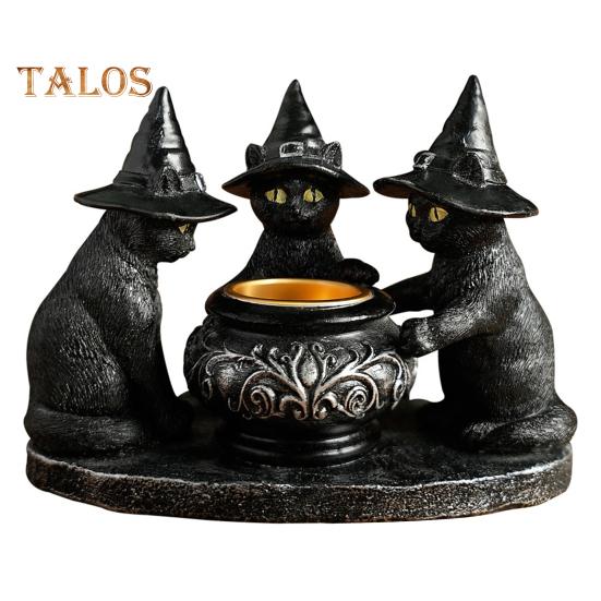 Подсвечник в виде черного кота, смоляной подсвечник в виде кошек на Хэллоуин с ведьмиными шляпами, винтажный подсвечник, настольное украшение, подарок для любителей кошек Cat