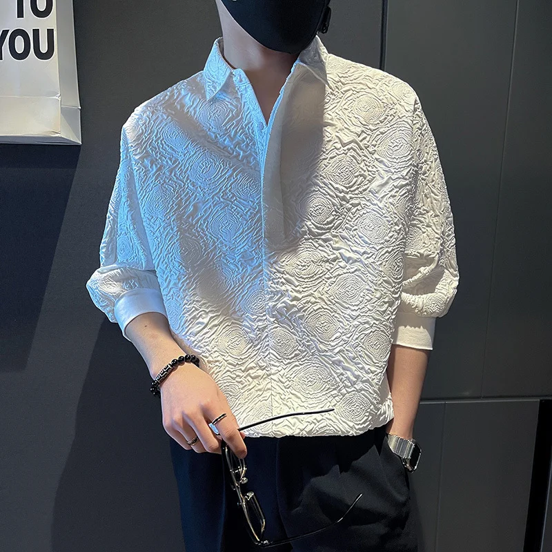 Pleated Printed Shirts Men 2022 Summer Half Sleeve Fashion Casual Shirt Loose Streetwear Male Clothing Social Party Tuxedo Tops