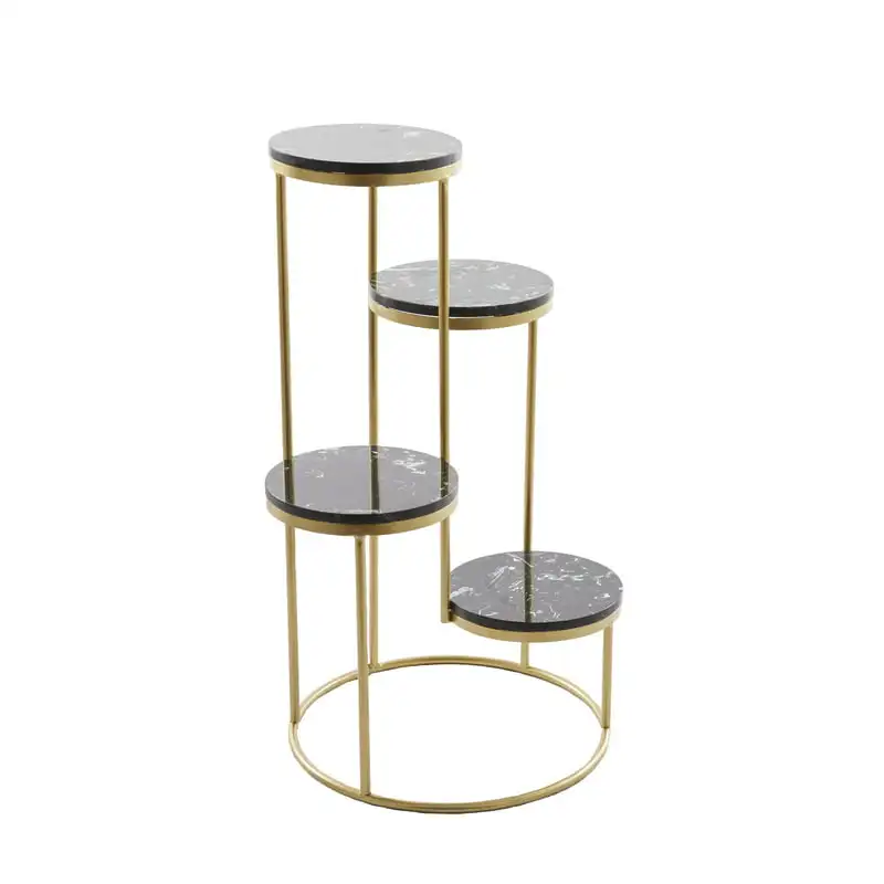 Подставка для цветов, Многоуровневая Подставка под черный мрамор, 17x17x31 дюйм, с золотой основой