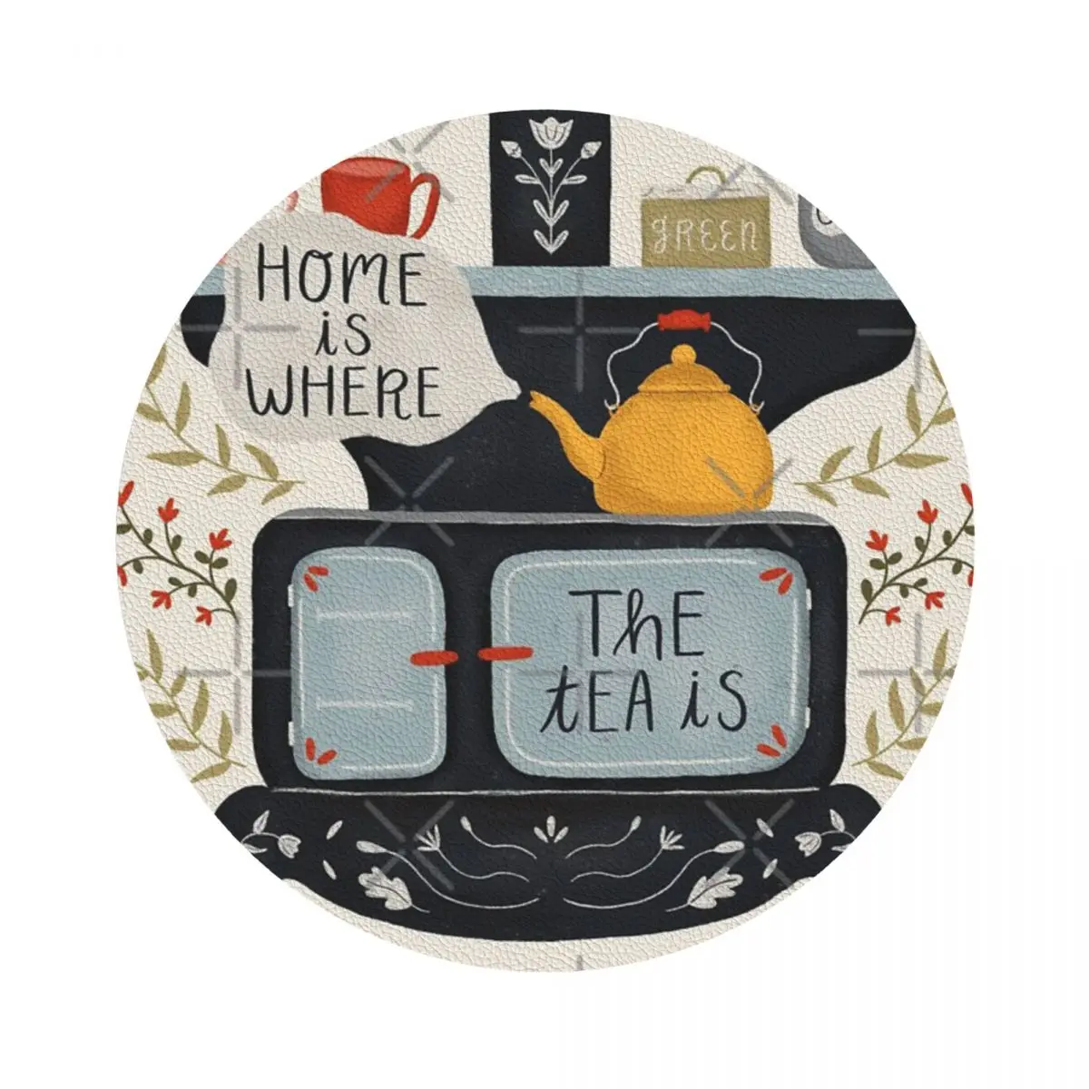 Подставка под чай Home Is The Tea Coaster из четырех частей, подставка под кожу, устойчивая к пятнам, для ресторана, 10x10 см