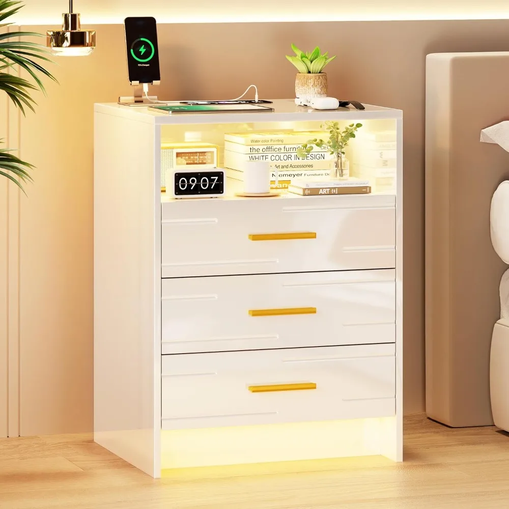 Подставка с зарядной станцией, настольная подставка для спальни, гостиной, дома, с 3 выдвижными ящиками
