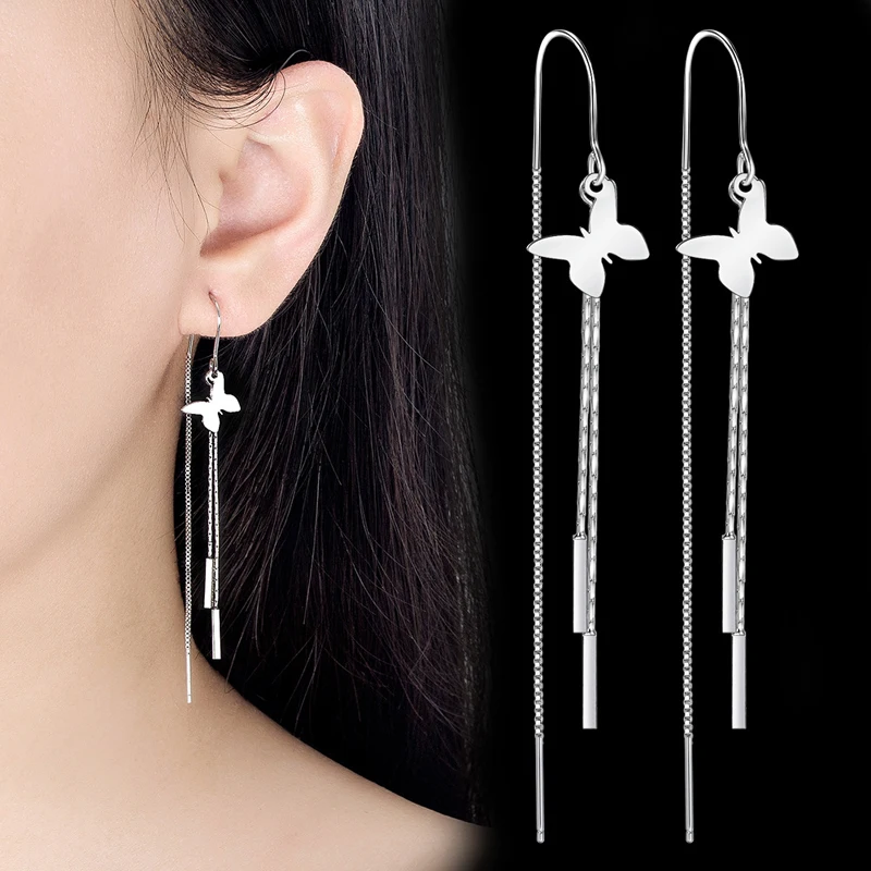 KOFSAC Charm Female Ear Line Fashion 925 Sterling Silver Earrings Cute Butterfly Rectangle Tassel Earring Engagement Jewelry