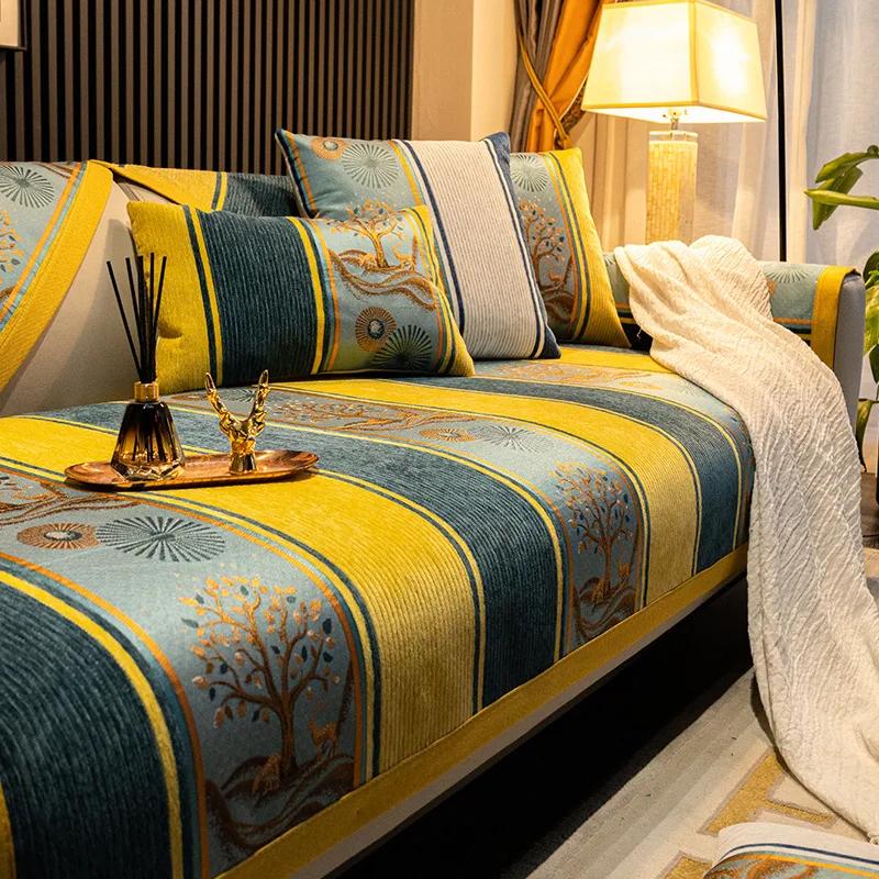 Подушка для дивана из синели, универсальная подушка для дивана с жаккардовыми листьями, противоскользящее полотенце для украшения гостиной 70x70cm 1pcs