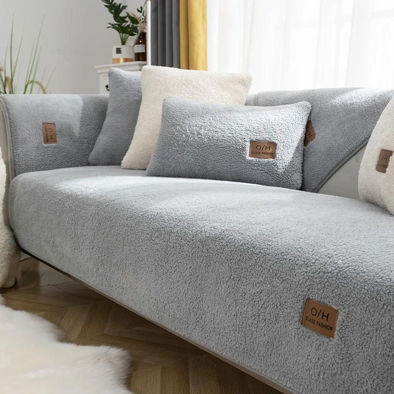 Подушка для дивана Winter Lamb Plush, утолщенная подушка для сиденья, полотенце для дивана, нескользящий коврик, современный чехол для углового дивана L, декор для гостиной и дома 110x240cm 1pcs серый