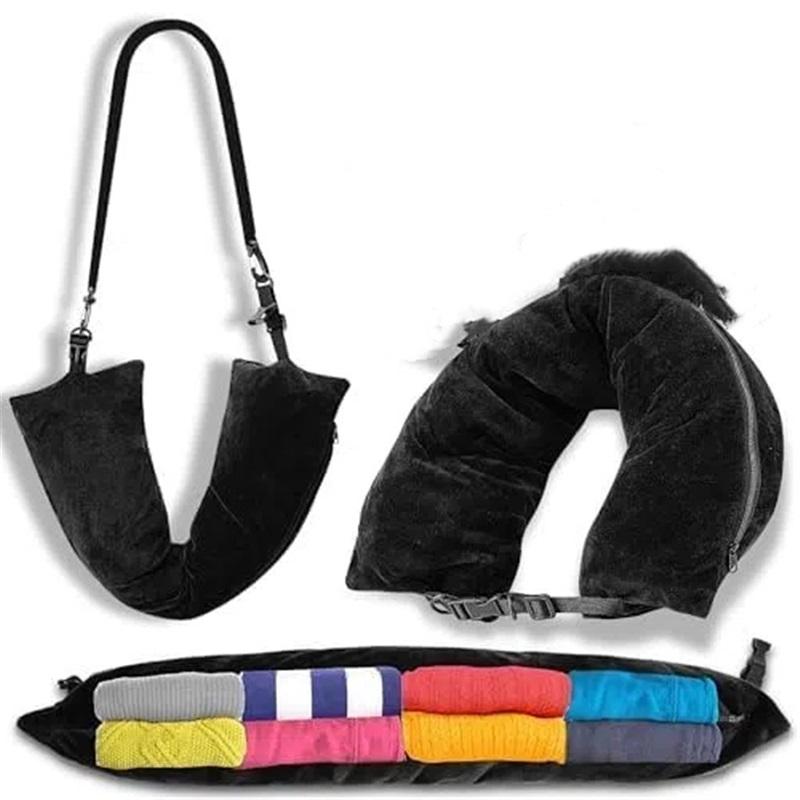 Подушка для путешествий Портативная поддержка шеи Дорожный подголовник с сумкой для хранения Регулируемая набивная дорожная подушка для шеи для путешествий в самолете, поезде, автомобиле чёрный