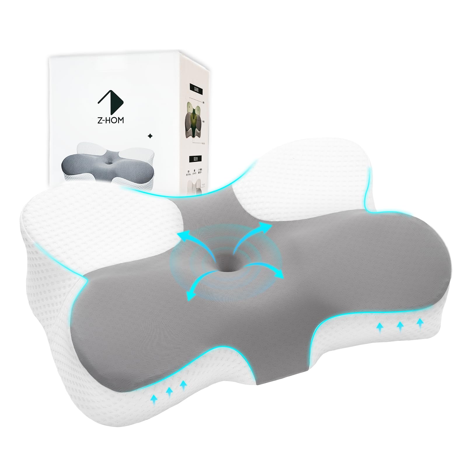 Подушка из пены с памятью для сна, с эффектом памяти, для шеи, полая, для шеи и плеч, в форме бабочки, вогнутая, эргономичная, удобная для сна на спине и боку, низкая, моющаяся, серая, Z-HOM серый
