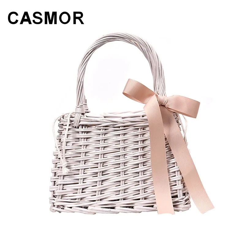 CASMOR Women Knitting Bucket Bags 2019 Summer Beach Straw Vintage Handbag for Female Scarves Basket Top Handle Bags Totes
