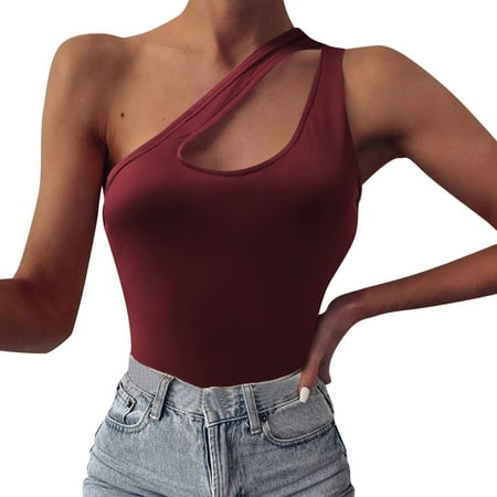 Pianpianzi Long Top Womens Camisole Bras Women Padded Cross Back Tops for Women Ladies Camisole Ladies Tops Irregular Shoulders Cross-border Sexy Personality Vest Sexy T-shirt