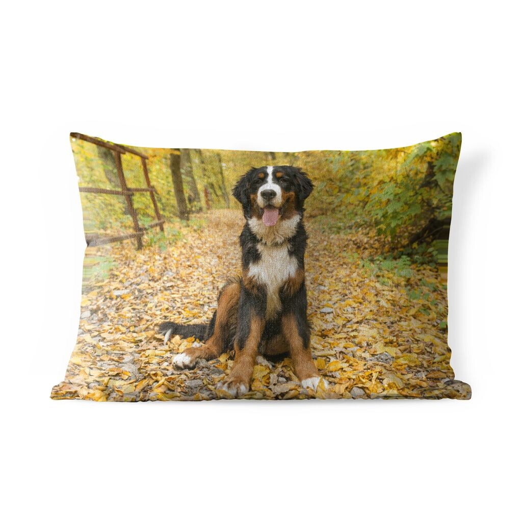 Подушка MuchoWow для улицы - Бернский зенненхунд с красивыми осенними листьями - 60x40 см - Устойчивость к атмосферным воздействиям - Подушка для отдыха - Чехлы для подушек - Декоративные чехлы для подушек - Декоративные чехлы для подушек, мульт...