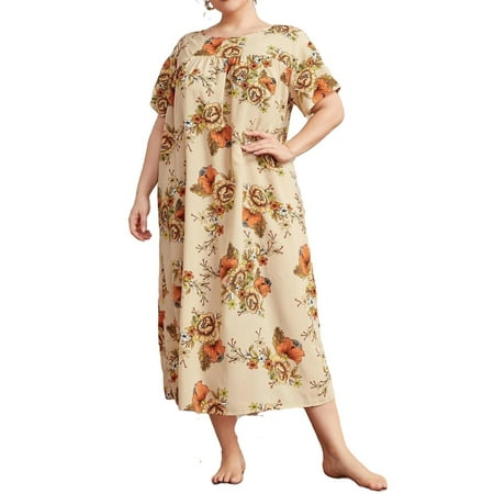 Casual Floral Boat Neck Nightgowns Multicolor Short Sleeve Plus Size Nightgowns & Sleepshirts