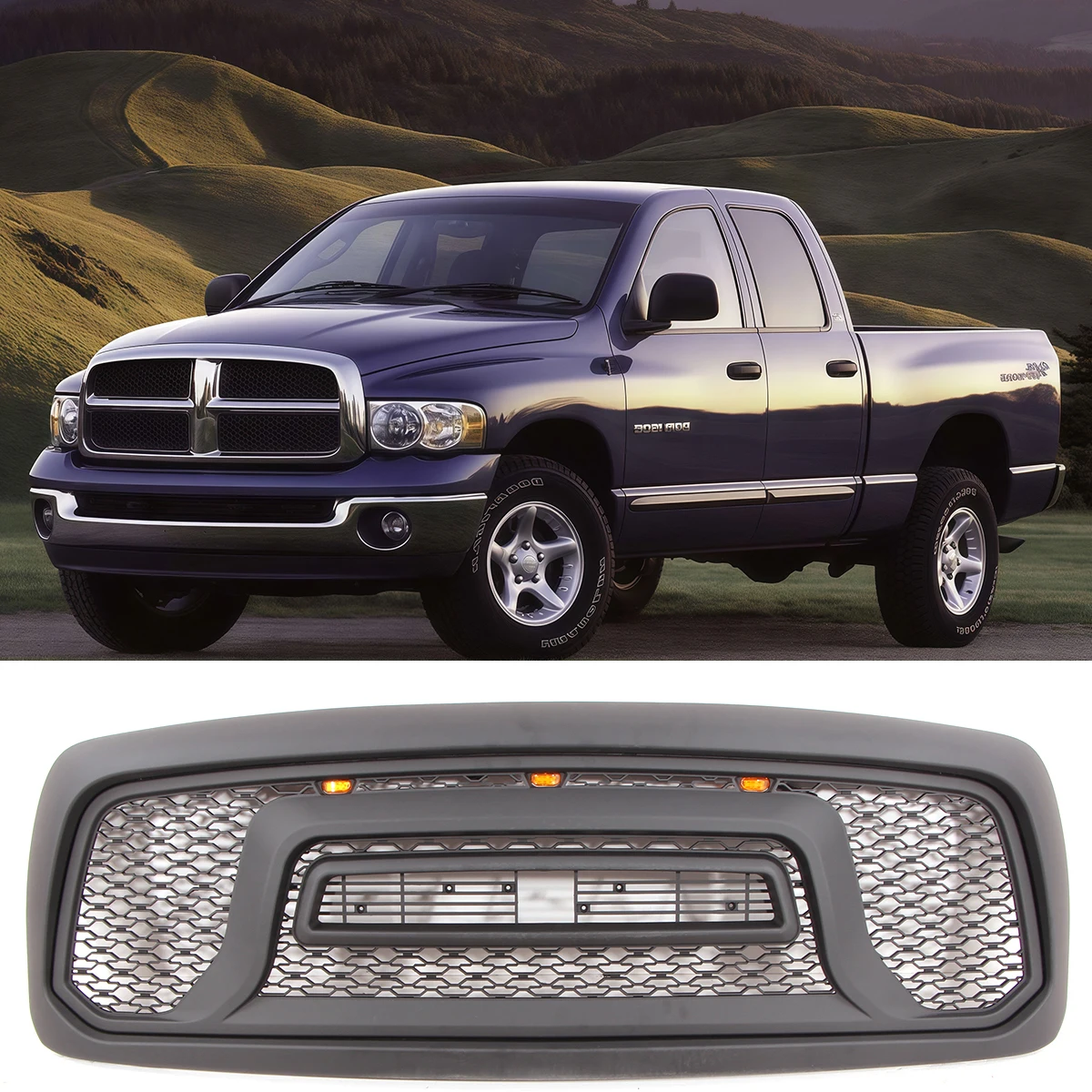 Front Grille Fit For Dodge Ram 1500 2002-2005 2006-2008 2009-2012 Black Grill