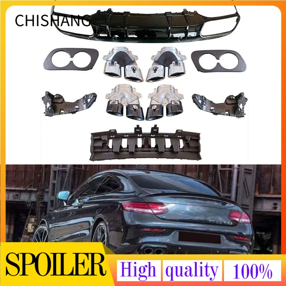 Подходит для Mercedes-Benz C-Class W205 C43 C63 Coupe 2015 2016 2017 2018 2019 с выхлопными наконечниками, диффузор для заднего бампера