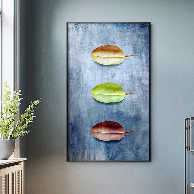 Abstract Three Leaf Posters And Prints Colourful Leaves Canvas Painting Wall Art Pictures For Living Room Home Decoration