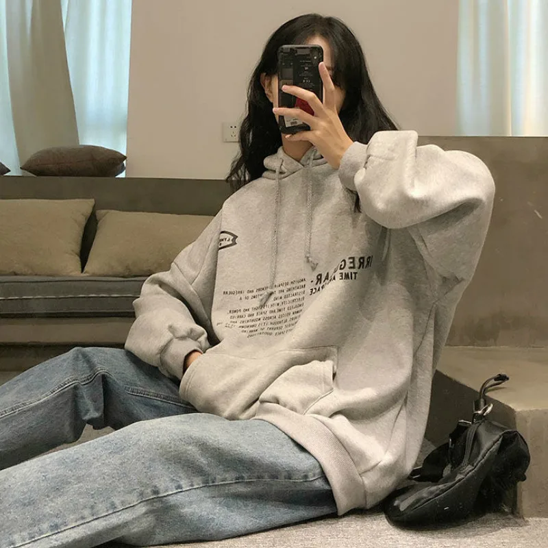 Women Chic Street Style Simple Letter Hooded Lady Pullover All-match Leisure Retro Fall Thicker Teen Hoodies Harajuku Sweatshirt