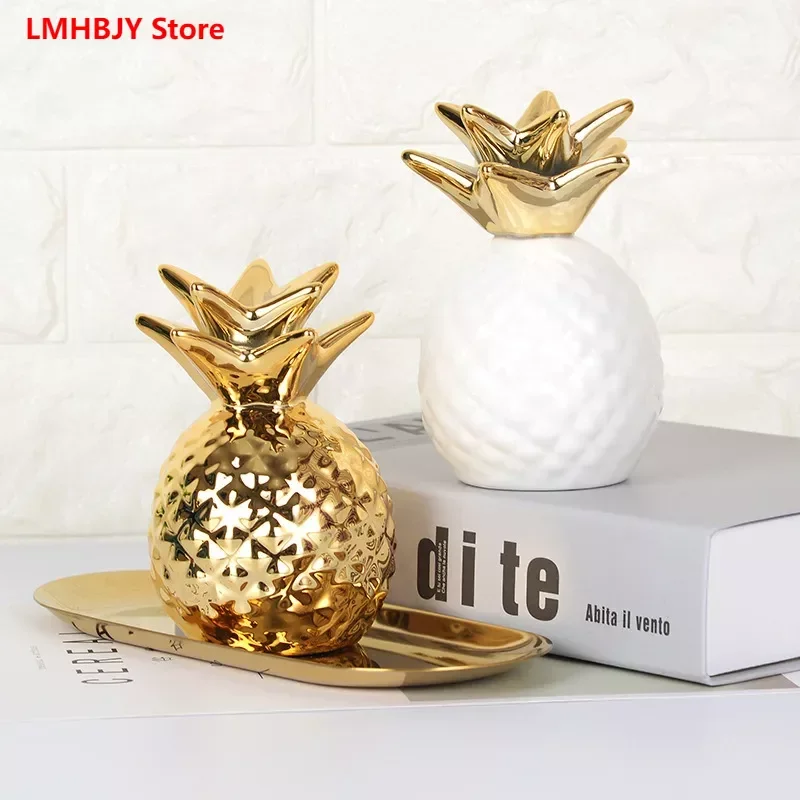 Позолоченная Копилка в виде ананаса, керамическая копилка, креативное настольное украшение для дома
