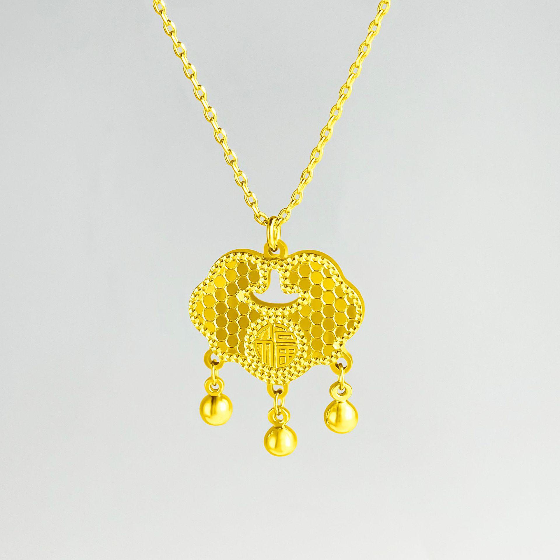 Позолоченное китайское ожерелье с подвеской в виде замка мира и благоприятным облачным колокольчиком gold. copper золотой