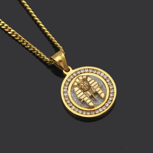 Позолоченные Хип-Хоп Ювелирные Изделия Круг Фараон Кулон Ожерелья Для Мужчин Выс
