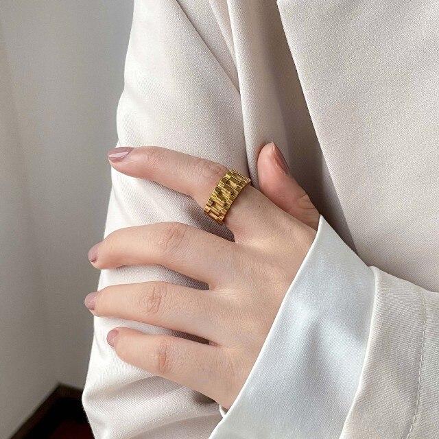 Позолоченный стильный ремешок для часов из нержавеющей стали 316L, кольца для женщин, массивные кольца на палец, водонепроницаемые ювелирные изделия, подарок 6