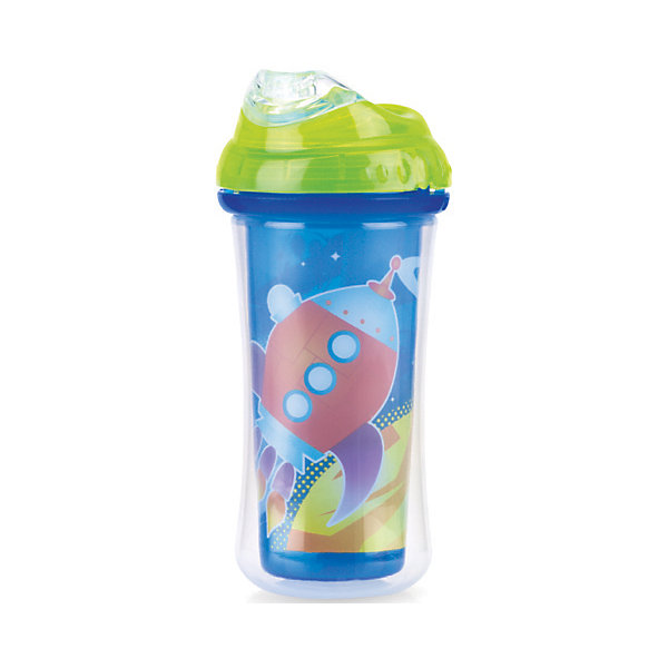 Поильник с силиконовым носиком-непроливайкой "Ракета", Nuby, синий/зеленый
