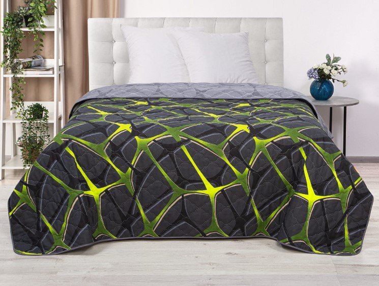 покрывало, бязь (хлопок), зеленый/серый/черный