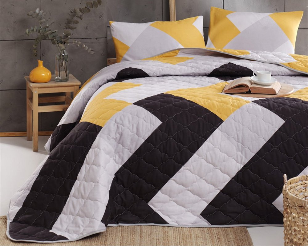 Покрывало стеганое двустороннее EnLora Home ранфорс Baskili Ufki Sari-Fume 225х240 с наволочками 50х70