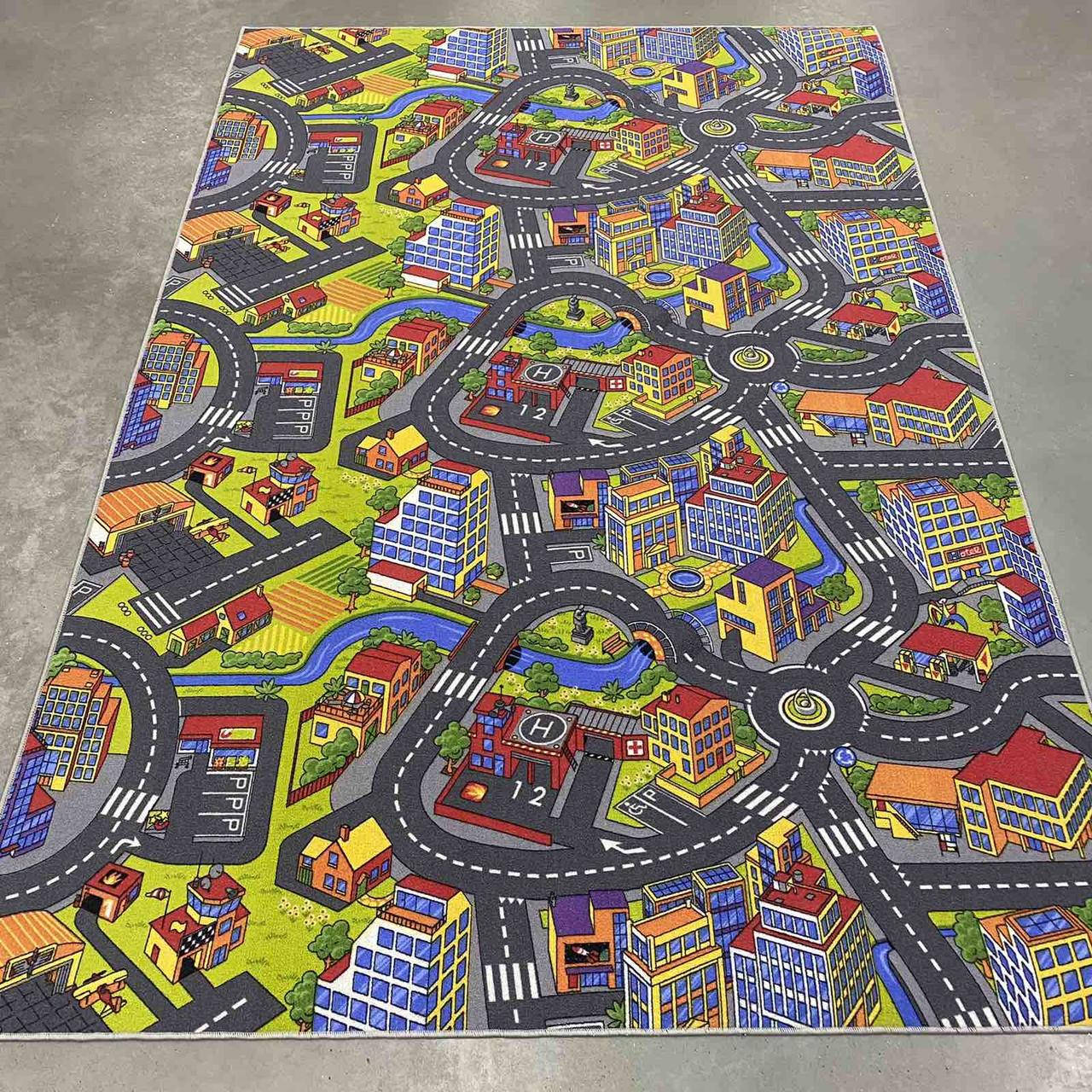 Детский ковролин Смарт Сити - Вы только присмотритесь - многоэтажные дома, торговые центры, дороги.с круговым движением, пешеходные переходы, фонтаны, парковки, больница с вертолетной площадкой на крыше. Детский взгляд найдет еще больше деталей и интересностей) Это покрытие - не только выполняет роль износостойкого покрытия в целом, но и хорошо помогает развитию, логике, моторике рук, да и вообще развитию фантазии маленького ребенка. Выполнен в приятной цветовой гамме, красивые цвета, насыщенные оттенки.