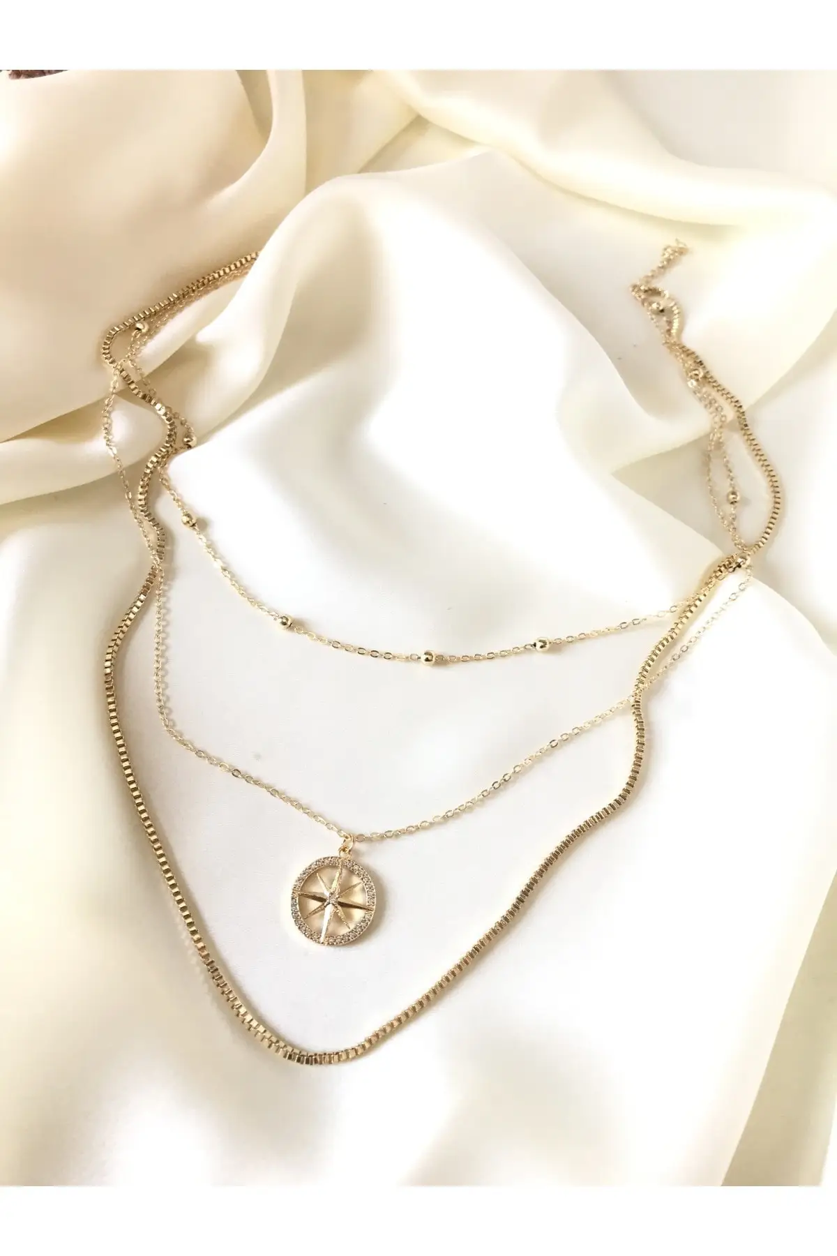 Покрытие из желтого золота, 14 к, 3 дюйма, lü Kombin, подвеска с компасом, позолоченный циркониевый камень