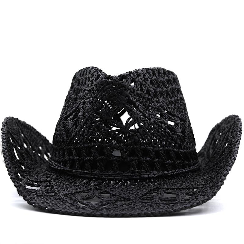 Полая джинсовая шляпа ручной работы из натуральной травы, дышащая, прохладная, американская шляпа-джаз с деформированными полями M(56-58cm)