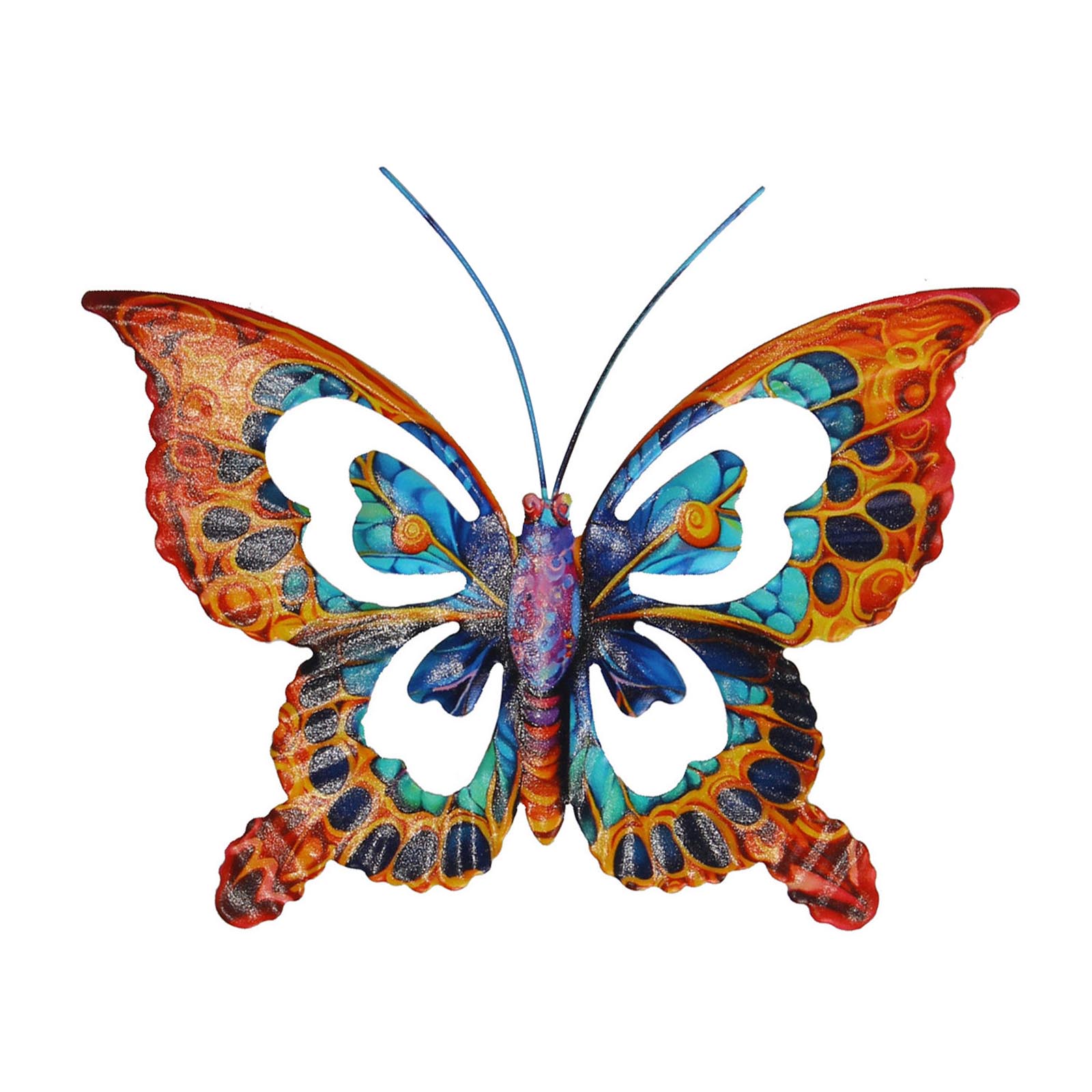 Полая цветная металлическая бабочка настенное художественное украшение садовый орнамент наружная внутренняя железная скульптура настенный декор синий
