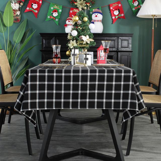 Полиэстер Хлопок Жаккард Рождественская Клетчатая Черно-Белая Прямоугольная Скатерть Красно-Черная Скатерть Покрытие Чайного Стола 135x135cm